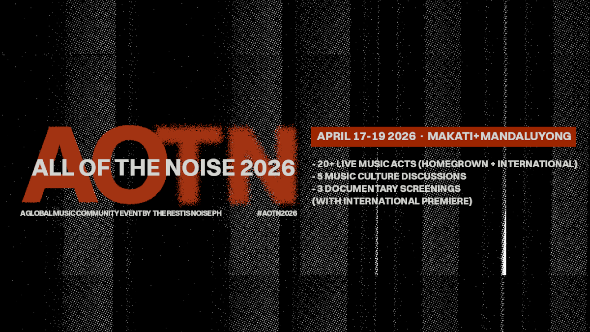 All Of The Noise 2026 is supported by international and local music partners including ONErpm, Symphonic Distribution, Astbury, 123 Block, Sari-Sari, Nyou Consultancy, and Guevarra’s.